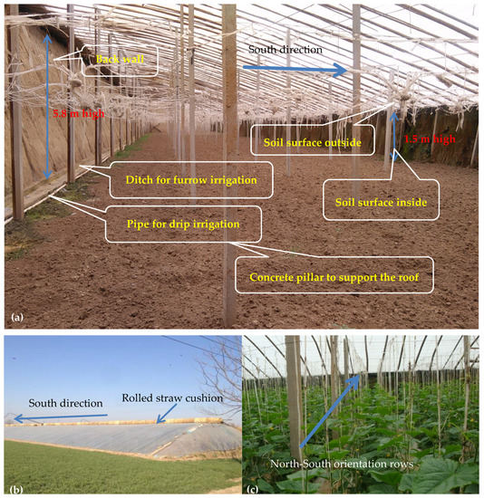 - Ren, J.; Zhao, Z.; Zhang, J.; Wang, J.; Guo, S.; Sun, J. Study on the hygrothermal properties of a Chinese solar greenhouse with a straw block north wall. Energy Build. 2019, 193, 127–138. [Google Scholar] [CrossRef]
