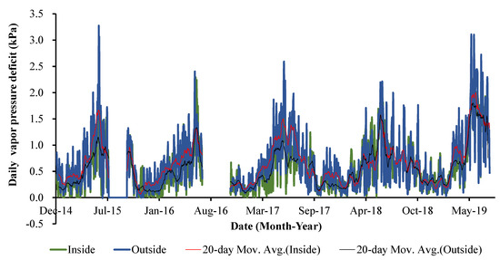 3.2.3. Relative Humidity and Vapor Pressure Deficit