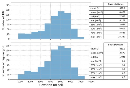 TIN and grid cell distribution across the elevation ranges in Marsyangadhi_2 catchment.
