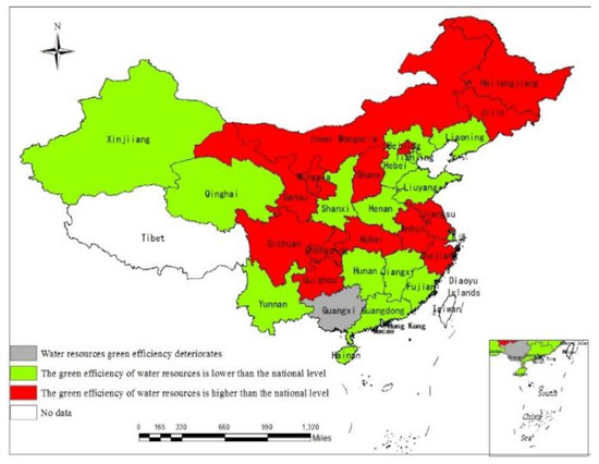 Zhang, H.; Chen, H.; Wu, M.; Jin, W.; Mao, G.; Long, R. Dynamic Evaluation and Internal Driving Factors of Water Resources Green Efficiency in China. Water 2020, 12, 2360. https://doi.org/10.3390/w12092360