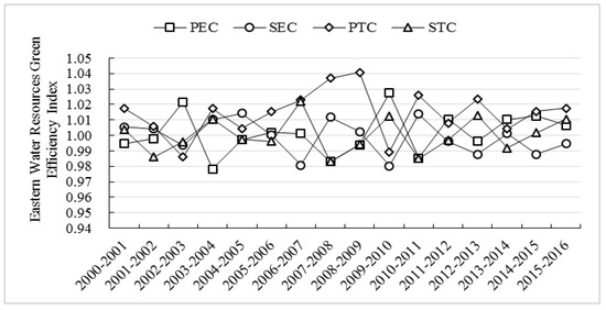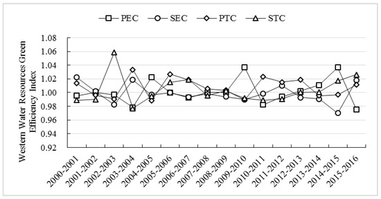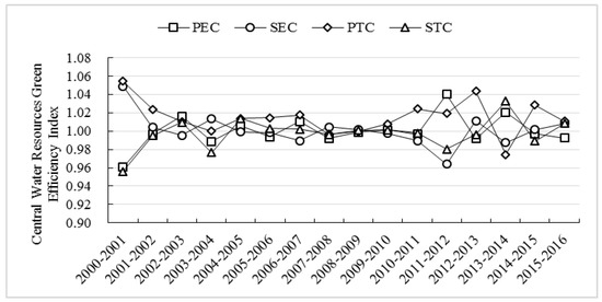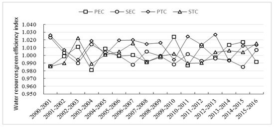 4.2.1. Time-Varying Characteristics of Water Resources Green Efficiency Decomposition