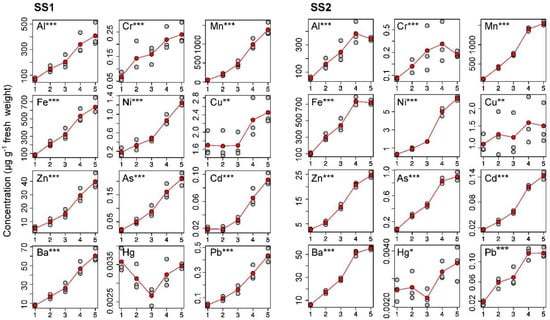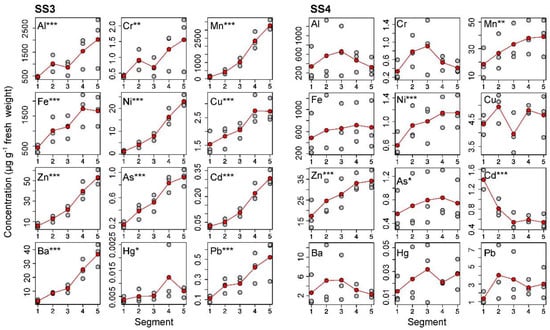 3.2. Trends in Element Concentration along the Shoots