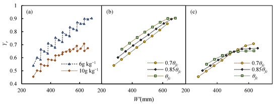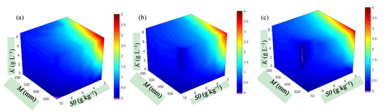 - cotton yield is significantly affected by irrigation quota M, initial soil moisture content W0, initial soil salt content S0, and irrigation water saltinity K. To ensure that the relative yield of cotton is above 0.85, the available water W’ (the sum of W0 and M) must meet the requirement W’ > 535 mm (with W0 ≥ 0.85θfc and M ≥ 400 mm), and total soil salt S’ should meet the requirement S’ < 9 g kg−1 (with S0 < 8 g kg−1 and K < 6 g L−1) in southern Xinjiang;