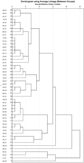 In cluster analysis, cluster classification is conducted on clusters of samples comprising multiple variables, and samples with similar properties and characteristics are classified into the same cluster. The analysis results are presented in a tree-shaped structure, which is highly similar to the shape of a phylogenetic tree. Samples with higher correlation are connected first to form small clusters; subsequently, small clusters are connected with other small clusters or unconnected samples in sequence according to their correlation. The process is repeated until a single cluster is formed. When the phylogenetic tree is complete, the relationship between the samples becomes apparent. The number of clusters classified in this process is determined by the set likelihood value [36].