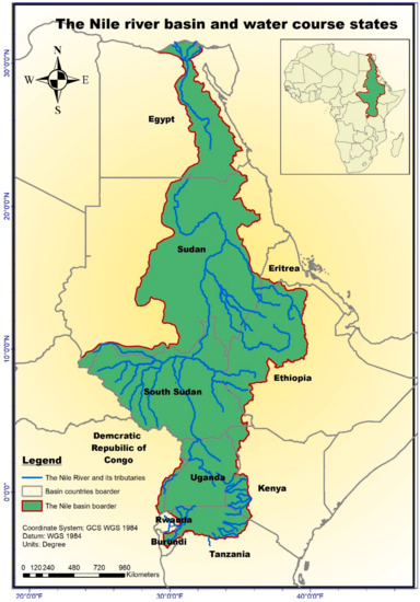 Therefore, for a river basin such as the Nile, where only two downstream countries fully control the water based on the 1929 and 1959 colonial treaties and disagreements escalate from time to time [12,13,14,15,16,17], implementing the principle of equitable and reasonable utilization by identifying measurable indicators is warranted. If not, the Declaration of Principles (DoP) agreed upon in 2015 by Egypt, Ethiopia, and Sudan to utilize the river based on equitable and reasonable sharing remains unfunctional [18].