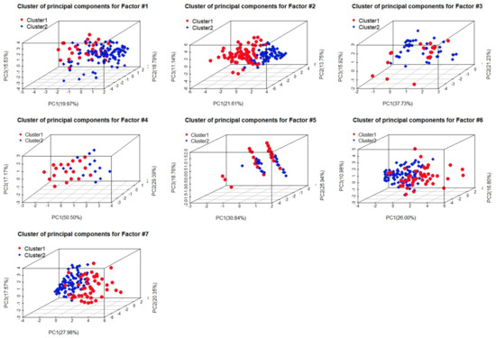 To avoid overfitting and reduce dimensionality, a principal component analysis (PCA) was employed on all indicators under each factor. A PCA reduces the size of the independent variable set by retaining the maximum variance using fewer dimensions than the original number of indicators. The number of principal components (PCs) retained in this study followed by Formann [36], such that the proportion between the number observations and number variables (v) is greater than 5 × 2V. For this study, three PCs were retained under each of the seven factors. All data were confirmed to follow a normal distribution.