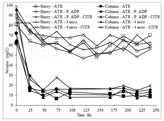 | Atrazine, four microbes *, Na-citrate | 100 | 1.0 |