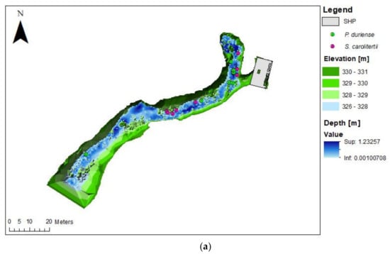- Santos, J.; Godinho, F.; Ferreira, M. Microhabitat use by Iberian nase Chondrostoma polylepis and Iberian chub Squalius carolitertii in three small streams, north-west Portugal. Ecol. Freshw. Fish 2004, 13, 223–230. [Google Scholar] [CrossRef]