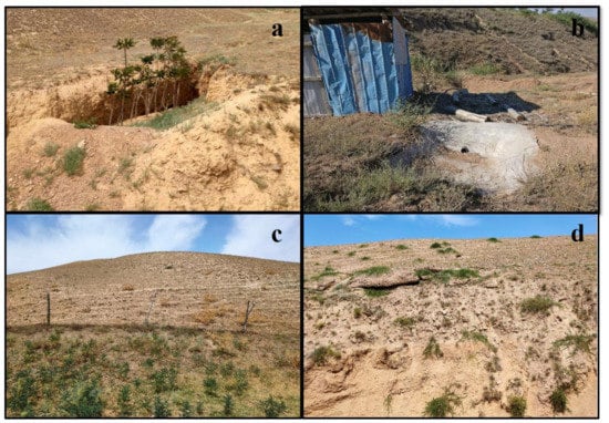- Stavi, I.; Perevolotsky, A.; Avni, Y. Effects of gully formation and headcut retreat on primary production in an arid rangeland: Natural desertification in action. J. Arid. Environ. 2010, 74, 221–228. [Google Scholar] [CrossRef]