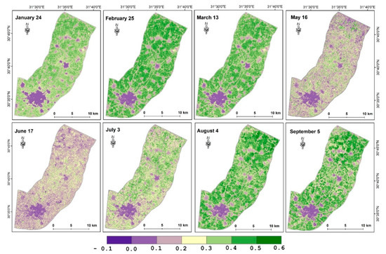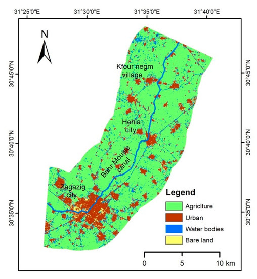 - Abdulaziz, A.M.; Hurtado, J.J.M.; Al-Douri, R. Application of multitemporal Landsat data to monitor land cover changes in the Eastern Nile Delta region, Egypt. Int. J. Remote Sens. 2009, 30, 2977–2996. [Google Scholar] [CrossRef]