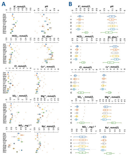 - Mandal, U.K.; Warrington, D.N.; Bhardwaj, A.K.; Bar-Tal, A.; Kautsky, L.; Minz, D.; Levy, G.J. Evaluating impact of irrigation water quality on a calcareous clay soil using principal component analysis. Geoderma 2008, 144, 189–197. [Google Scholar] [CrossRef]