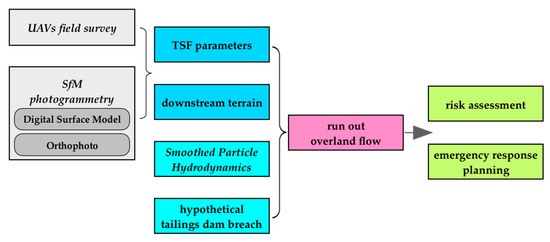 Therefore, the aim of this study is to determine the potential for using the UAV photogrammetry technique and the SPH numerical method to predict a hypothetical TDB run out flow over downstream real terrain. The proposed multidisciplinary procedure is shown in Figure 1.
