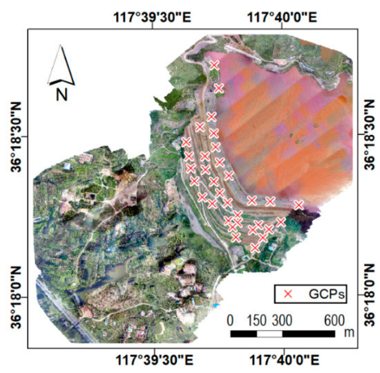 According to the manufacturer’s specifications, the two UAV drones (DJI Phantom 4 Advanced and DJI Phantom 3 Professional) used in the present study are equipped with a 24-mm FC6310 camera and a 20-mm FC300X camera (35 mm equivalent focal length), respectively. The aspect ratio of the FC6310 camera is 3:2 (5472 × 3648) and the aspect ratio of FC300X camera is 4:3 (4000 × 3000). Therefore, the GSD from the DJI Phantom 4 Advanced is calculated to be 2.74 cm/pixel. In the same manner, the GSD from the DJI Phantom 3 Professional is 4.33 cm/pixel. According to the processing report, the average GSD is 3.8 cm/pixel.