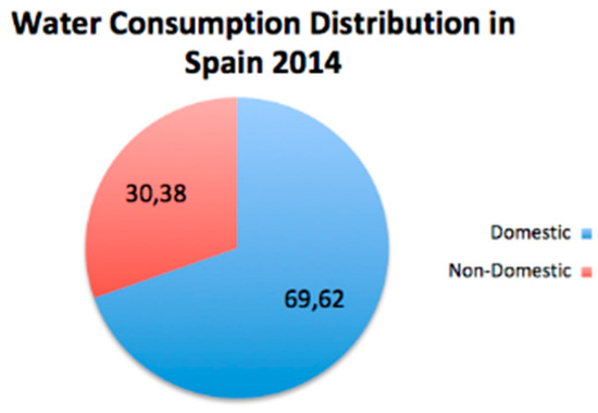 Domestic and non-domestic water consumption distribution in Spain in 2014.
