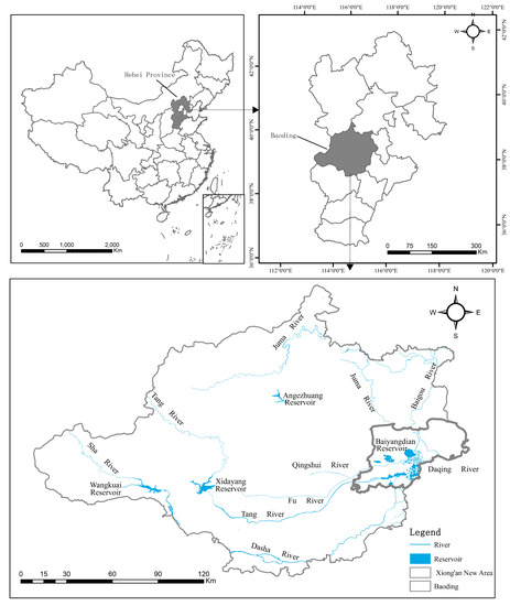 On the other hand, Baoding was included in the central functional region of Jing-Jin-Ji and was regarded as a regional central city and an important carrying area for noncapital functions in 2015, thus setting higher requirements for the carrying capacity of water resources. In 2017, China’s Central Government announced the official establishment of the Xiong’an New Area, which straddles three counties that previously belonged to Baoding as “a strategy crucial for the millennium to come”. With the aggregation of production factors, water represents a core strategic resource in this future demonstration area for innovative development with priority given to eco-environmental protection and green living environments. Therefore, as the core hinterland of Jing-Jin-Ji coordinated development and Xiong’an New Area, Baoding urgently needs researchers to carry out research concerning WRCC revaluation and comprehensive utilization to provide guidance for further water resource planning and management. In view of the above, Baoding was selected as the study area.