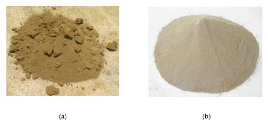 Tailings sample used in this study: (a) raw sample from the tailings pond; (b) sample after drying and crushing.
