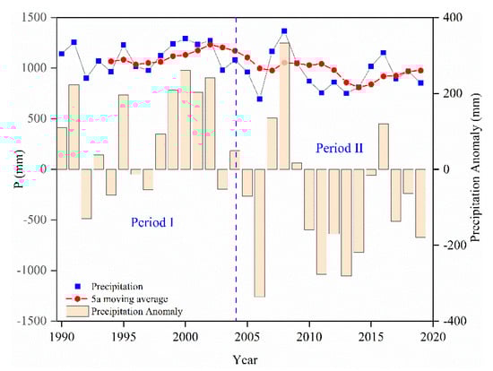 3.1.1. Variation in Precipitation in the Erhai Lake Basin