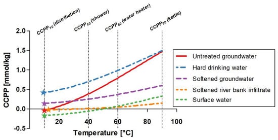 - CCPP is temperature-dependent and increased by 0.17–1.51 mmol/kg for five different water types when increasing the temperature from 10 °C to 90 °C, which must be considered when calculating CCPP in drinking water systems.