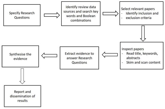 Our aim in this paper is to review and gain an understanding of cyber-security research targeted at protecting cyber–physical systems in the water sector, thence to identify areas that require future research. The Preferred Reporting Items for Systematic Reviews (PRISMA) [] guidelines were followed, as illustrated in Figure 3. A set of question research questions were devised to analyse and evaluate the relevant publications. A set of electronic databases and a search strategy was designed to identify the publications. Inclusion and exclusion criteria were used to assess the eligibility of each publication. The eligible publications were then manually inspected to extract relevant evidence for analysis.