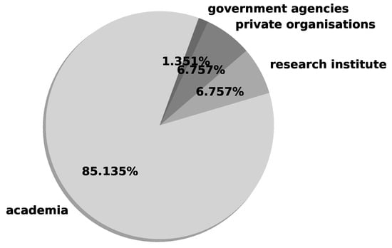 Figure 8 shows the results to answer RQ3. Most of the research has been carried out by academia (85.1%); 6.8% was based in private organisations that provide security consulting services; 6.8% is provided by independent or public funded research organisations; and one paper (1.4%) was supported by a government agency. Interestingly, we failed to identify any research papers that were co-written with authors from water companies.