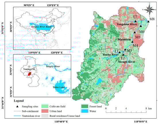 Location of sampling sites and land use types in Yuntaishan River basin, Nanjing, East China.
