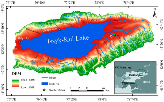 - Romanovsky, V.V.; Tashbaeva, S.; Crétaux, J.F.; Calmant, S.; Drolon, V. The closed Lake Issyk-Kul as an indicator of global warming in Tien-Shan. Nat. Sci. 2013, 5, 608–623. [Google Scholar] [CrossRef]