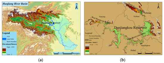 (a) Geographical location of the Hanjiang River basin; (b) Geographical location of the Danjiangkou Reservoir.