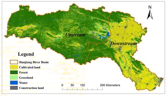 Land-use type distribution of the Hanjiang River basin in 2020.