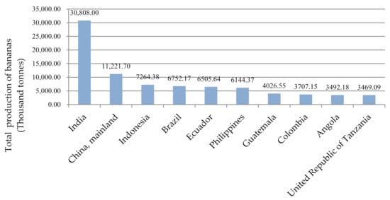 Top 10 banana producing countries by production in 2018. Source: Compiled from the data of FAO.
