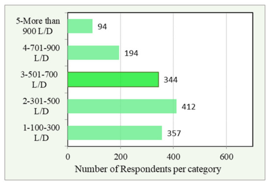 The survey data shows (Figure 1) that 55% of the respondents were not aware of the high per-capita water consumption in the city, 550 Liters/Day (L/D), while another 21% seemed to overestimate the daily consumption. Those results suggest that the public is not well informed about water usage and stresses the need for improved targeted information dissemination in line with improving water management practices in the city.