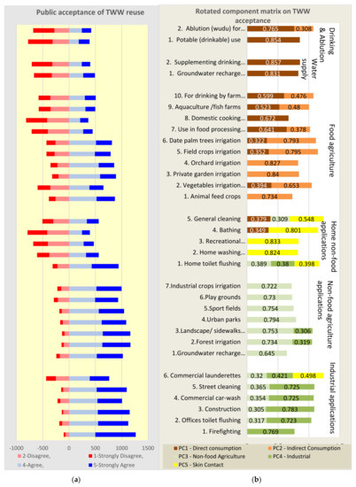 (a) Public acceptance of TWW reuse; (b) Results of PCA analysis of TWW acceptance data.