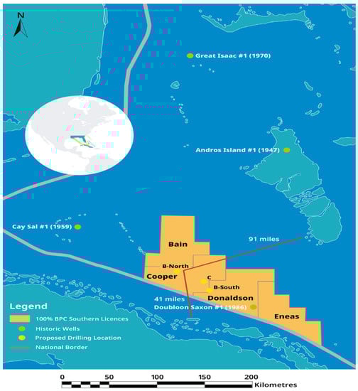 - Bahamas Petroleum Company (BPC). The Bahamas. Summary Information. 2021. Available online: https://www.bpcplc.com/operations/bahamas/ (accessed on 8 March 2021).