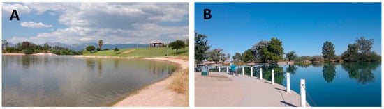 Water samples for the analyses were collected from Lakeside Lake (A) and Silverbell Lake (B) in Tucson, Arizona (USA).