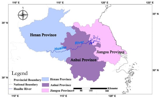 The spatial distribution and location of the associate province of Huaihe River basin.