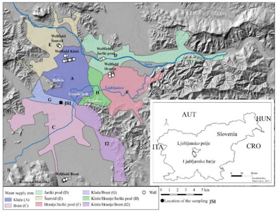 - Jamnik, B.; Urbanc, J. Izvor in Kakovost Podzemne Vode Ljubljanskega Polja = Origin and Quality of Groundwater from Ljubljansko Polje. RMZ 2000, 47, 167–178. [Google Scholar]