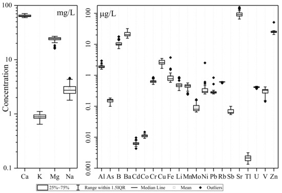 - Zuliani, T.; Kanduč, T.; Novak, R.; Vreča, P. Characterization of Bottled Waters by Multielemental Analysis, Stable and Radiogenic Isotopes. Water 2020, 12, 2454. [Google Scholar] [CrossRef]