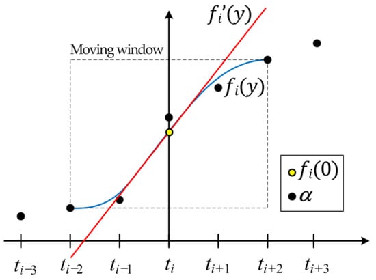 The scheme of the Savitzky–Golay smoothing differentiation filter using five ordinates of the S-curve.