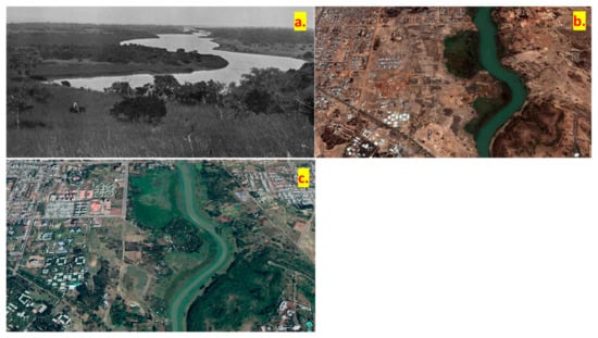 “The Blue Nile channel leading from the outlets of Lake Tana” (looking to the South), as seen in 1920 (Grabham and Black, 1925) (a), Google Earth map of the area taken in 2005 (b), and Google Earth map of the area taken in 2020 (c). A significant amount of the previous watercourse in (c) is exposed, portraying the water flowing out of Lake Tana is reduced due to water transfer to the Beles basin since 2010.