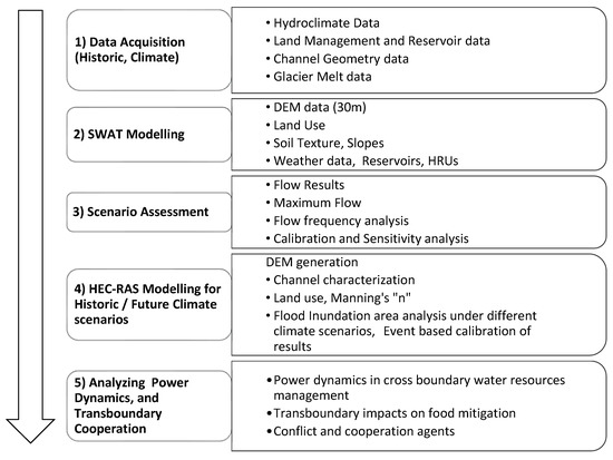 Since the KRB is a shared transboundary basin with many socio-economic, political and power dynamics, major flood prevention infrastructure projects, while benefitting flood routing, will impact areas downstream in the KRB. It might also be beneficial to use the example of the holistic and intra-basin water stress and flooding as proposed for the Ganges and Brahmaputra River basin between India and Bangladesh [32] as part of the communication to establish the merits of the situation for the KRB. Therefore, it is important to assess the power dynamics, the transboundary conflict and cooperation, and the risks and benefits associated with the future dams in KRB in basin-wide water resources distribution.