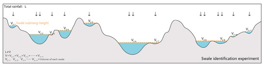 In this experiment, all swales were identified based on the topographic features. The difference between the overflow point (the highest point) and the bottom point (the lowest point) of each swale was arrived at to reflect the depth of the swale. The catchment capacity was calculated based on the swale depth.