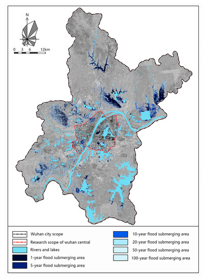 Wuhan features a sub-tropical monsoon climate with a long rainy season, concentrated storms, large rainfall volumes, contemporaneous rainy season and flood season, and delayed flood peaks. The city is therefore more vulnerable to storm-related disasters. The occurrence of urban flood is a complex problem involving the integrated water system and also includes the failure of urban drainage systems [26,27]. However, the urban, centralized drainage pipe system with the single purpose of drainage cannot adapt to short-term rainstorms in most cities in China and will also cause damage to the urban water ecological environment. As a city by the lake and the river, Wuhan has a rich and complex urban water system, the complex urban water ecological problems of which cannot be solved only through single-objective grey engineering measures [28,29].