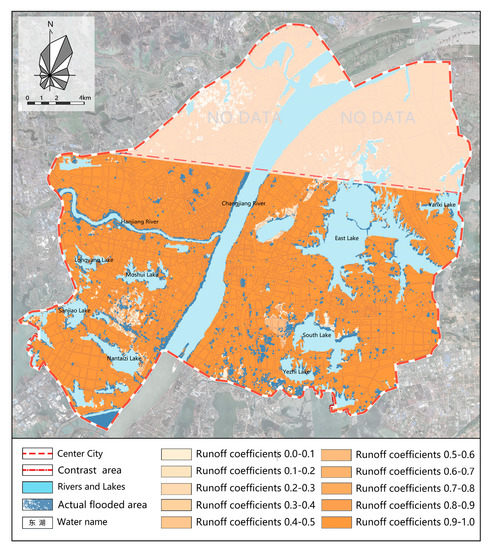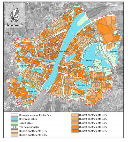 Runoff coefficients of downtown Wuhan.