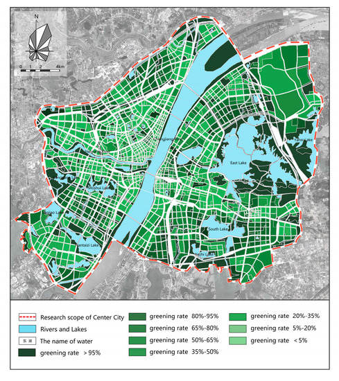 Minimum green coverage and green coverage of downtown Wuhan.