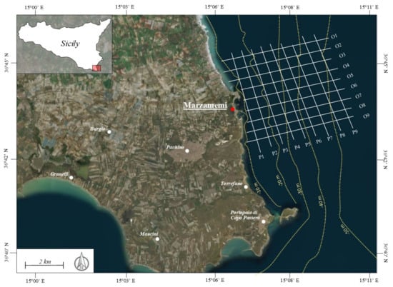 The offshore sector of the Marzamemi village represents a little part of the central portion of the Mediterranean basin, which has experienced major sea-level change during glacial cycles as showed in various types of geological records. It is known [,] that the Mediterranean coastlines provide a fruitful area for geomorphological and stratigraphic studies connected with the sea-level variation. In fact, here a wide range of geological and sometimes archaeological evidences are often available. For this reason, the study area—which lies along the southeastern Sicily coastline—is revealed as an excellent site to reconstruct the Quaternary stratigraphic setting of a continental shelf area, and where it was possible to study the development of the surfaces attributable to the sequence stratigraphy.