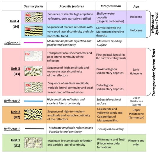 Facies analysis and the stratigraphic position of the acoustic units recognized within the seismic profiles interpreted in this paper.