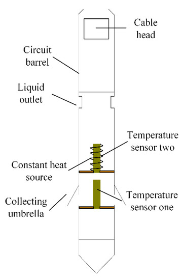 The resistance heating wire in the measuring pipe section is used for constant current power supply. When the fluid flows through the resistance heating wire, it will take away the heat of the resistance heating wire and reduce its temperature. The temperature is measured by a highly sensitive sensor (PT1000) (Heraeus, Hanau, Germany). The larger the flow rate of liquid phase fluid, the more heat lost at the heating wire, the lower the temperature at the sensor and the smaller the resistance value of temperature sensor two. According to this principle, the flow rate of fluid can be detected by measuring the change of resistance value of two temperature sensors.