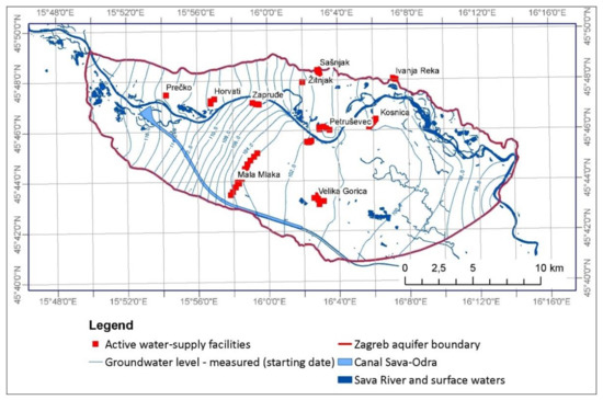 - Vujević, M.; Posavec, K. Identification of Groundwater Level Decline in the Zagreb and Samobor-Zaprešić Aquifers since the Sixties of the Twenties Century. Min. -Geol. -Pet. Eng. Bull. (MGPB) 2018, 33, 55–64. Available online: https://hrcak.srce.hr/ojs/index.php/rgn/article/view/6776 (accessed on 25 March 2021).