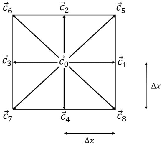 where and are the coefficients and points of the quadrature Equation (7). In 2D computations, LBM uses the Gauss–Hermite quadrature equation with at least five points for the numerical integration. The quadrature equation being chosen allows us to determine the coefficient and the direction . With these two parameters, we can then discretize BE by setting , which must verify the BE in turn as: