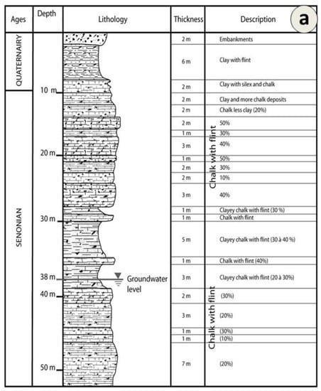 The geological information which was deduced from the field investigation (Figure 2b) in Oise [] and from the analysis of wells revealed the following formations: