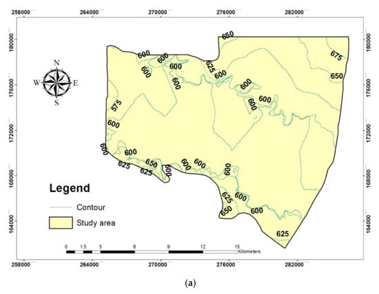 - Digital Elevation Model (DEM) of 30 m was downloaded from USGS Earth Explorer (https://earthexplorer.usgs.gov/ (accessed on 25 April 2020)).